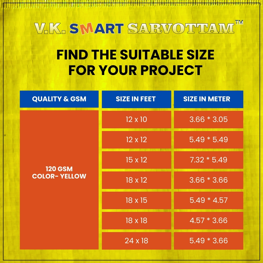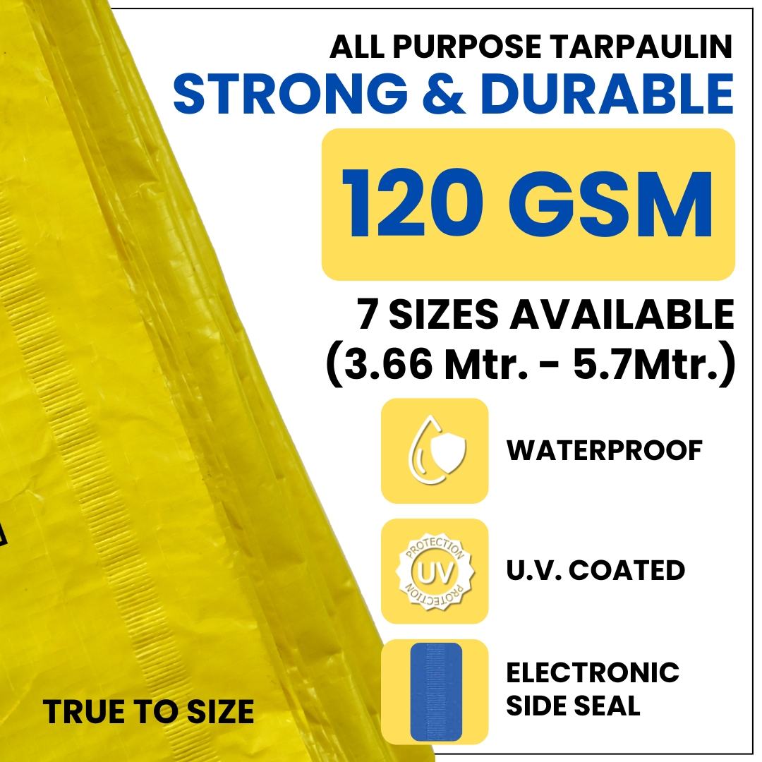 V.K. Sarvottam Smart HDPE Tarpaulin | Tarp | Tirpal 120GSM | UV Coated & Waterproof & Jointless (Yellow)